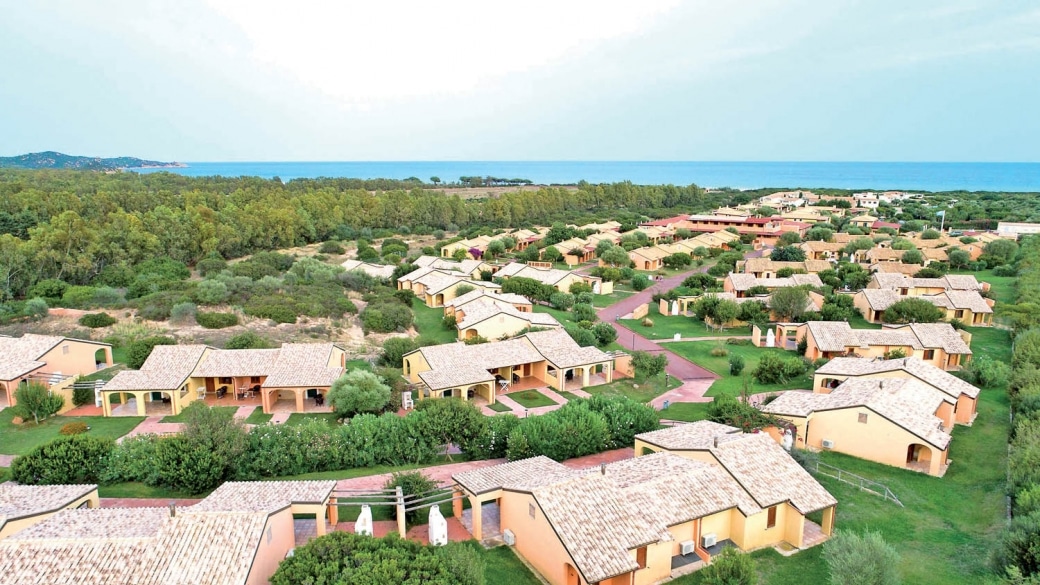 DESCRIZIONE E SERVIZI: sorge su un’area privata protetta di oltre 5 ettari e dispone di 216 camere, tutte arredate in tipico stile sardo dislocate in diverse villette al piano terra o in palazzine a due piani, circondate da una ricca vegetazione mediterranea.