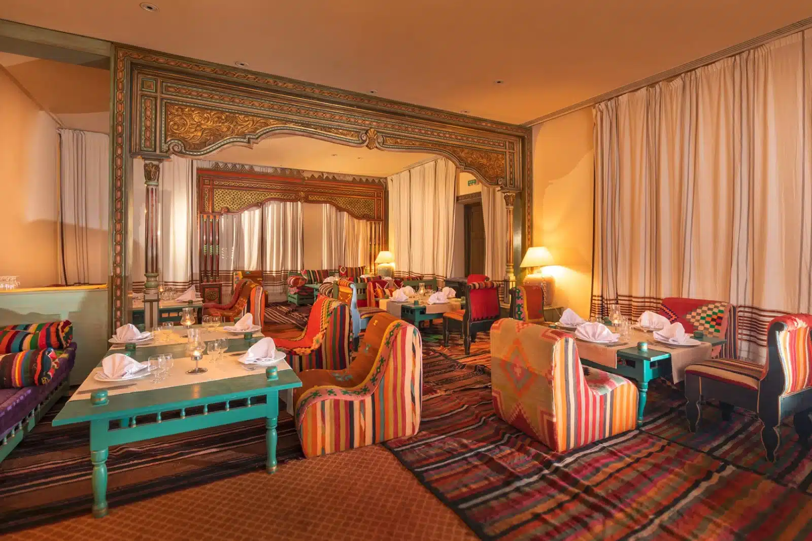 Ristorante principale Ulysse con servizio a buffet e chef italiano, ristorante tematico che alterna specialità della cucina tunisina a cucina mediterranea e di pesce, aperto per cena e su prenotazione (secondo disponibilità). Un ristorante in spiaggia, aperto dalla seconda metà di giugno a settembre per pranzi leggeri. La cena di Ferragosto è inclusa nella formula. Bar in spiaggia Le Phare (da giugno a settembre), bar piscina L’Oasis, bar principale Le Meninx, caffè moresco Halfaouine con terrazza tipica dove poter degustare dell’ottimo tè (altre consumazioni a pagamento).